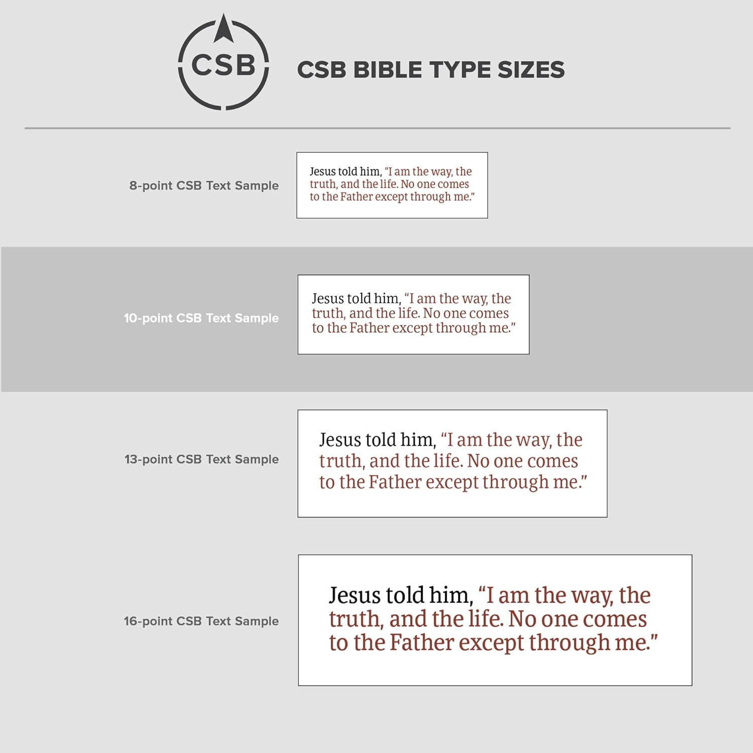 The CSB Everyday Study Bible features concise study notes excerpted from the award-winning CSB Study Bible and foundational study tools throughout to help Christians grow in their faith. This easy-to-carry study Bible is designed to equip readers with a “go-anywhere” resource to foster daily engagement and application of God’s Word.