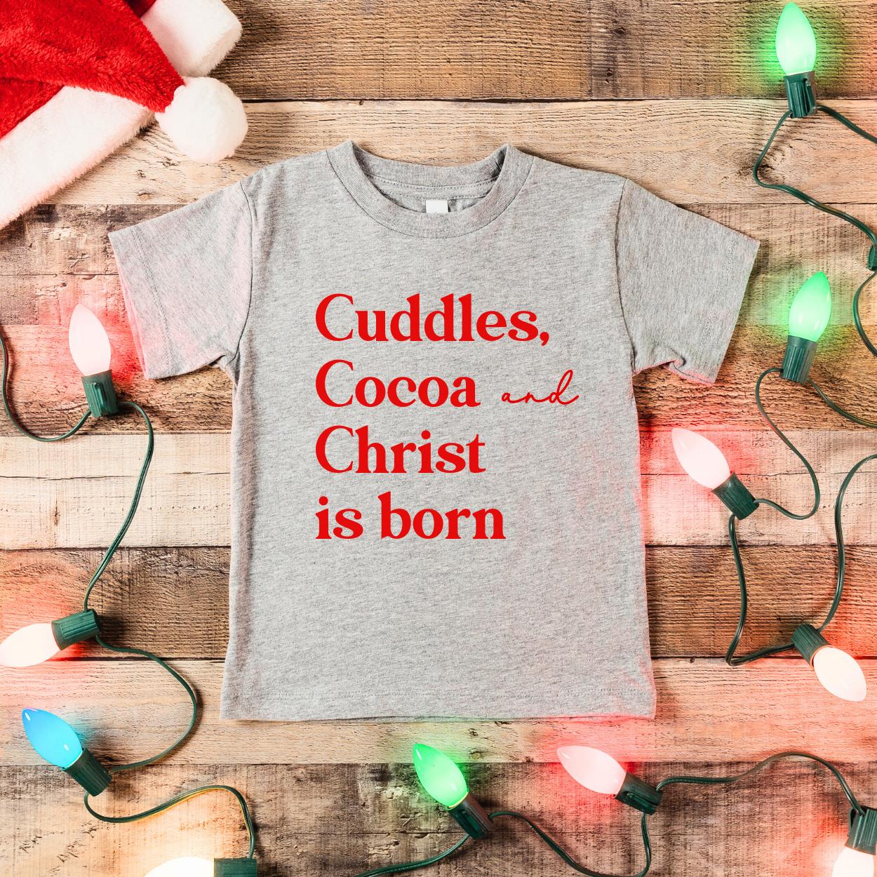Cuddles, Cocoa and Christ is Born Toddler Tee Shirt