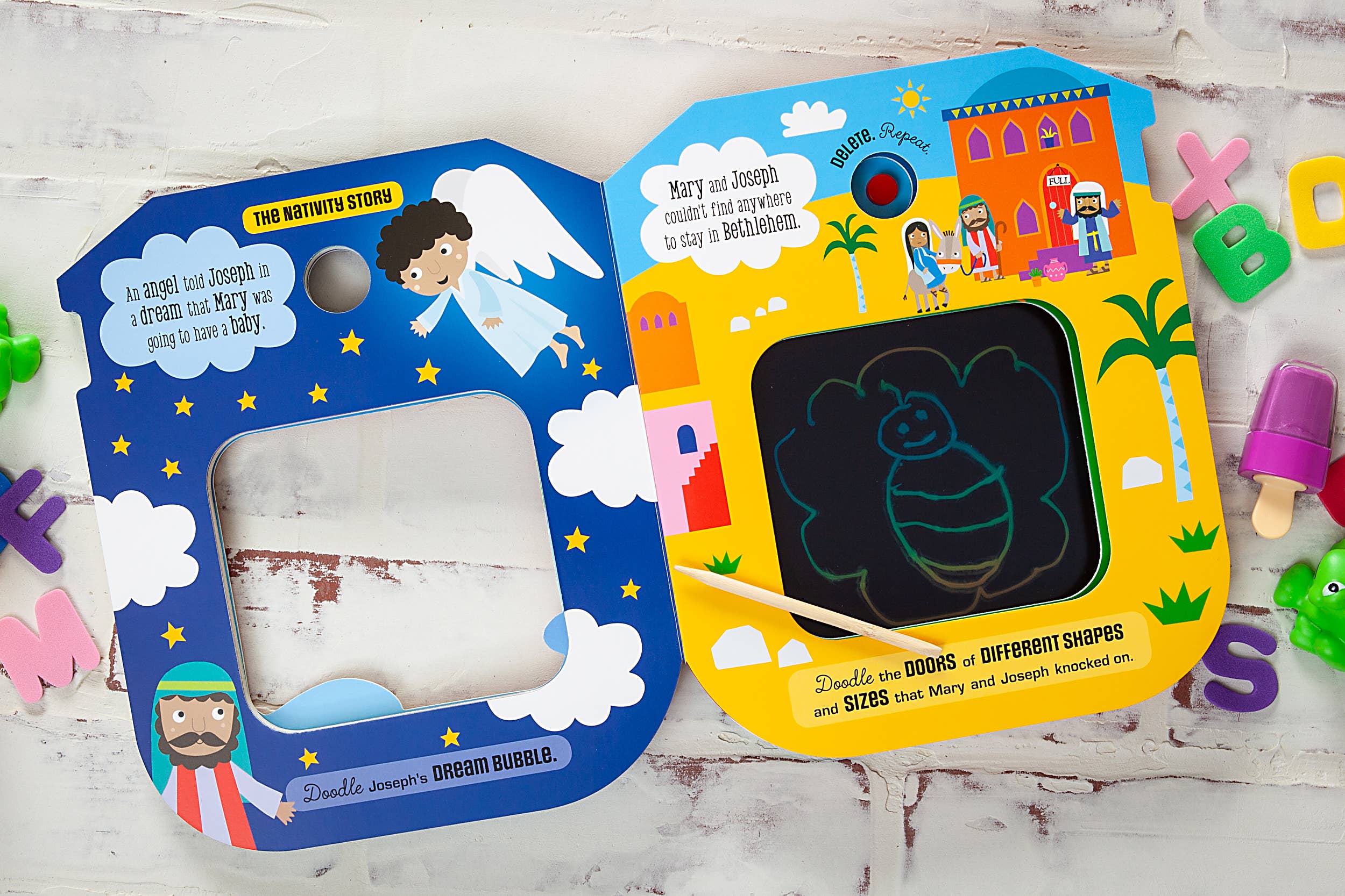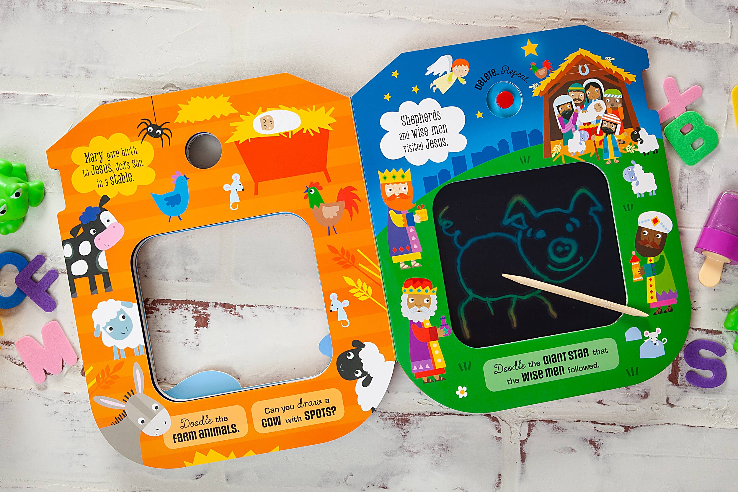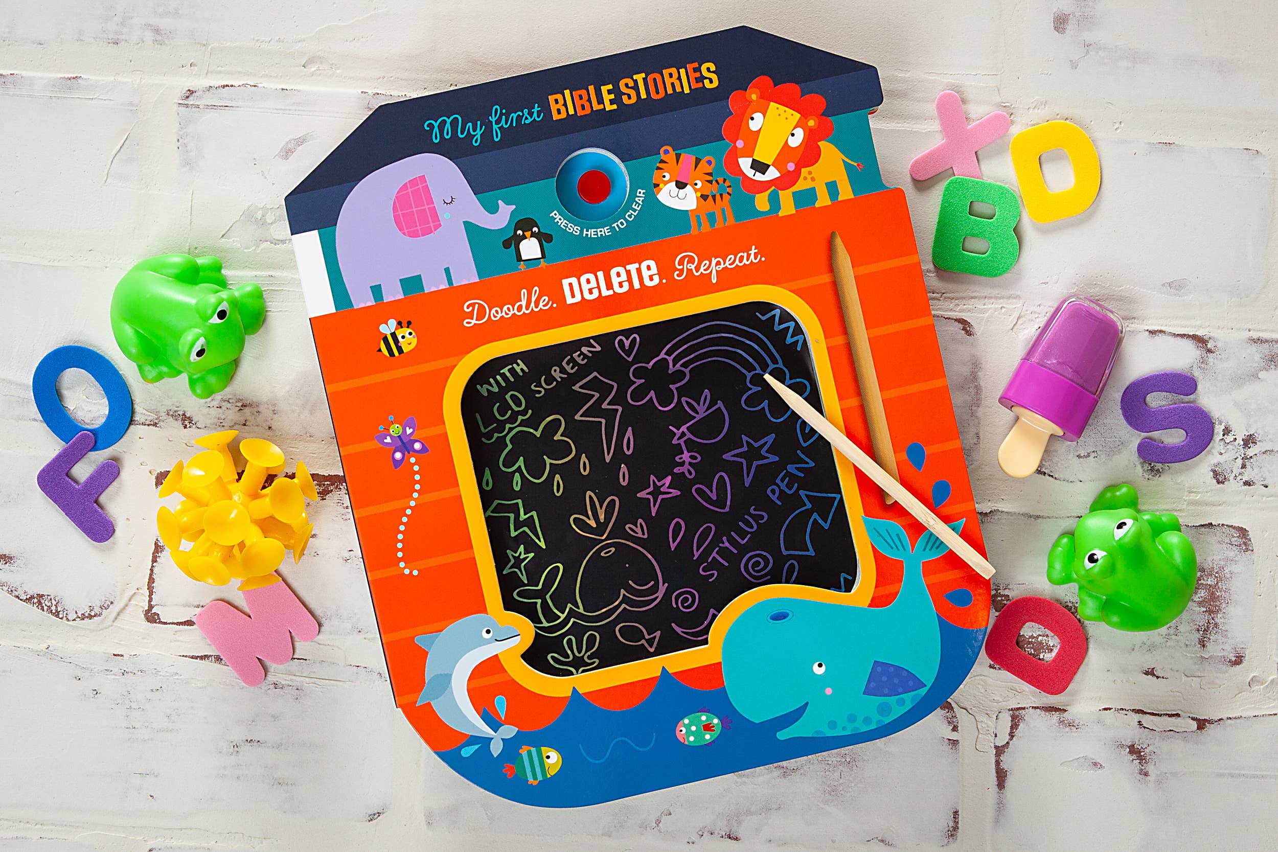 Let your imagination run wild in this amazing doodle book for little artists. Featuring a cool LCD screen and stylus, every page has prompts to help kids create colorful works of art in a mess-and-stress-free environment. Mistakes can be easily fixed with the click of a button. This sturdy doodle book is the ideal gift for children who love to draw and explore their fine motor skills! Features: Hardcover, 26 pages, 1 CR2025 battery. 3v. included Easter basket ideas, gifts for toddlers, children's books, activity books, children's activity books, inspirational gifts, Christmas gifts for kids, religious, Bible