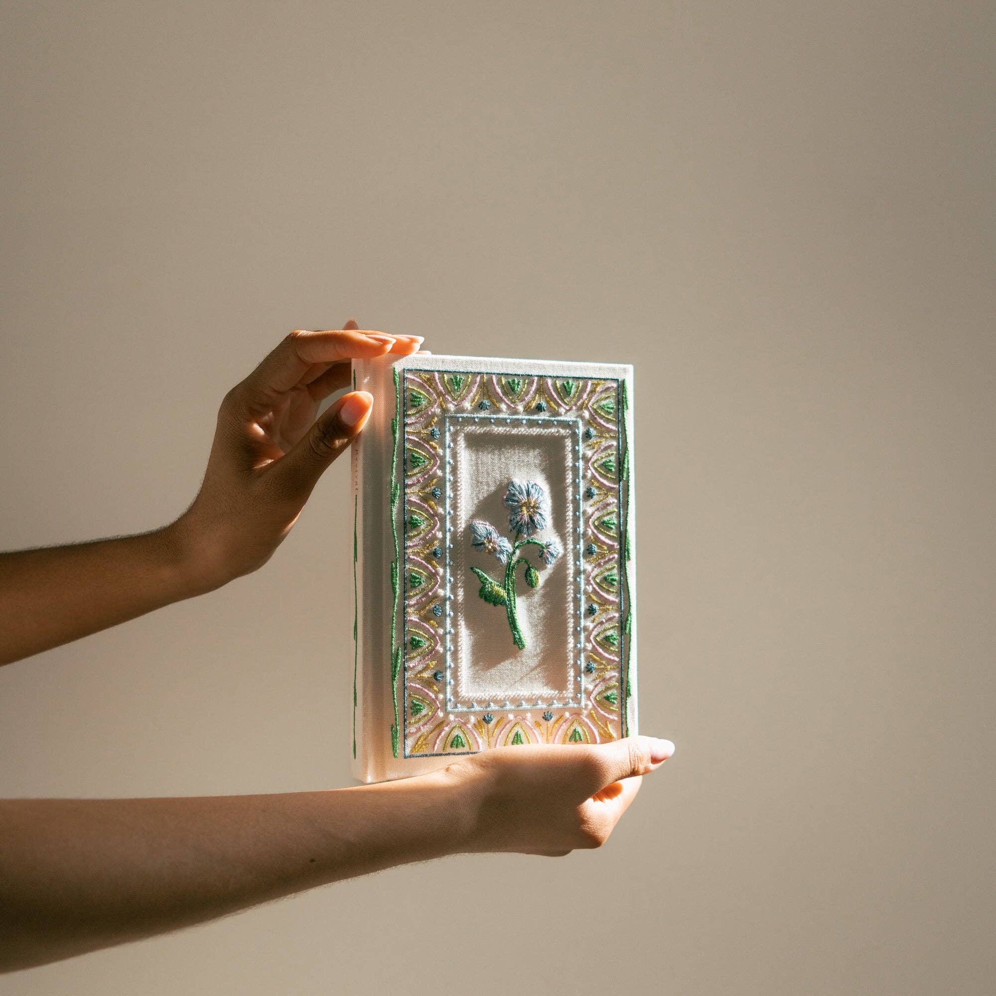 Hosanna Revival Retail Price: $21.90 Suggested Retail Price: $21.90-$27.00 This beautiful notebook features our Lisbon design, based on the city in Portugal and inspired by the lively, colorful coastal port of Lisbon. An embroidered blue Cosmo flower elegantly adorns this notebook, while pink, green, and blue embroidery outlines the cover, each carefully-placed thread showcasing the Lord’s intentionality. May this design remind you that you are strikingly beautiful to your Father, intentionally created with each detail carefully chosen by his precious hands. The back of this notebook is graced with the popular hymn lyric, “On Christ the Solid Rock I Stand.