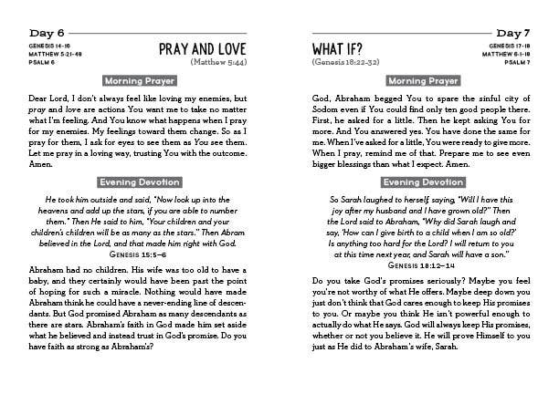 The All-in-One Devotional Experience for Boys! This cool devotional, created especially for you, includes a simple plan for reading and praying through the Bible in one year alongside both 3-minute devotions and prayers for morning and evening. Each day of the year, you’ll be invited to read a passage from the Old Testament the New Testament and the Psalms or Proverbs along with a thoughtful devotional and a heartfelt prayer starter. With each turn of the page, you’ll discover practical truth for everyday living. It’s a perfect way to spend a year in God’s Word!