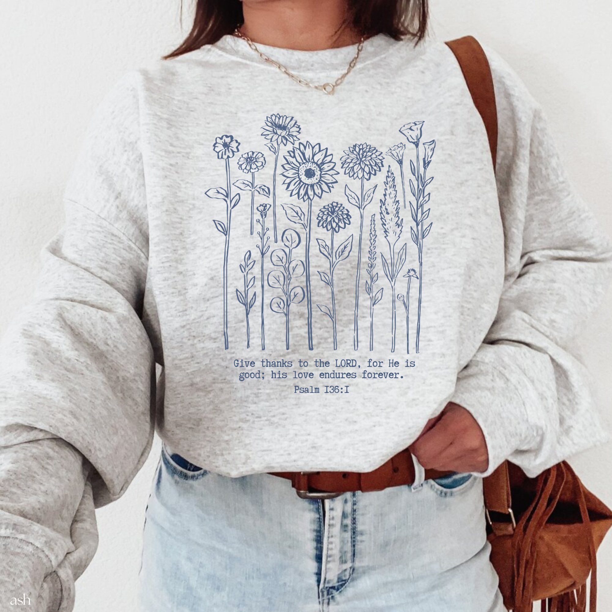 November Sweatshirt of the Month: Give Thanks to the Lord for He is Good