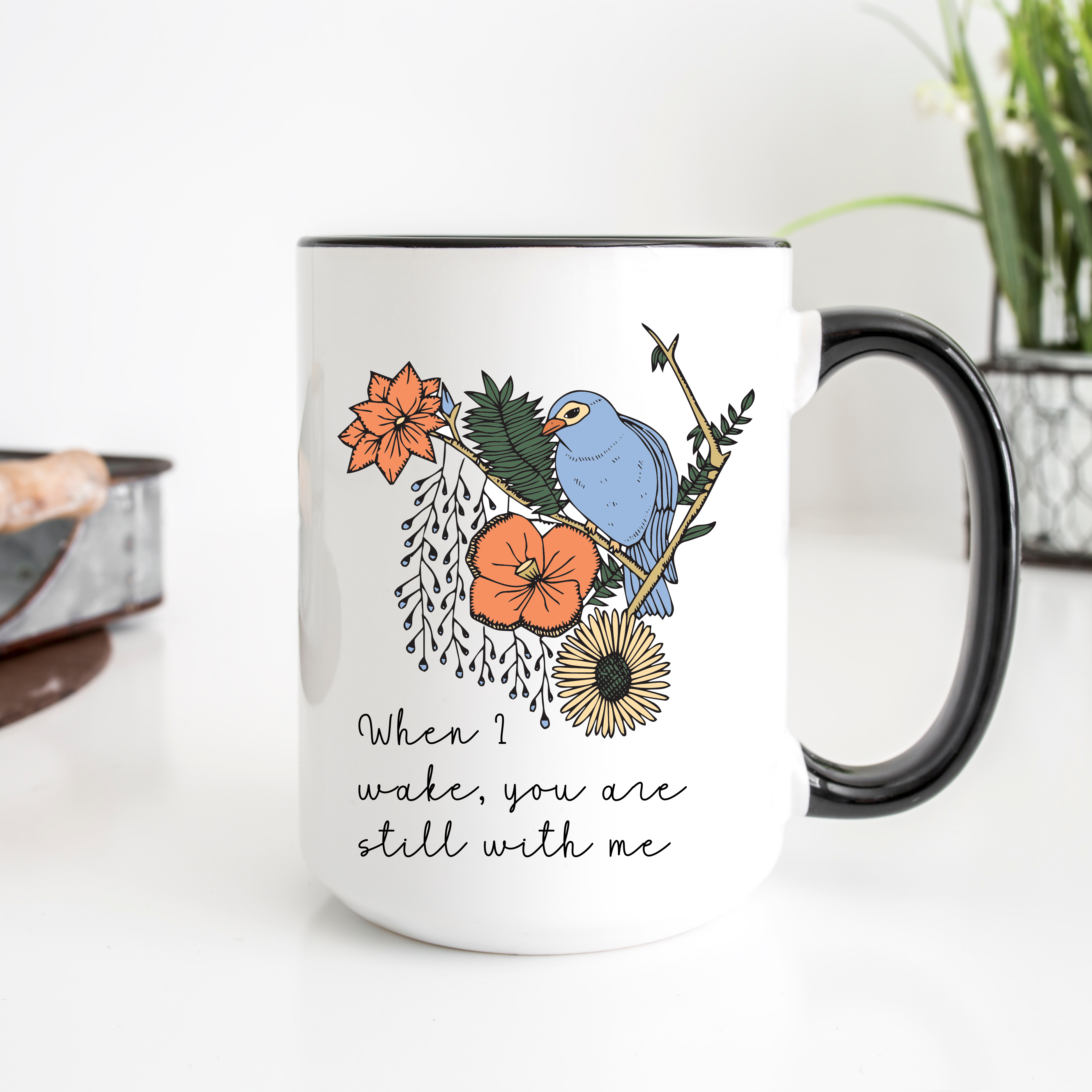 This Christian mug will make a charming gift for you or someone you love. All mugs are designed, printed and heat transferred right in our shop in Downtown White Bear Lake, Minnesota!