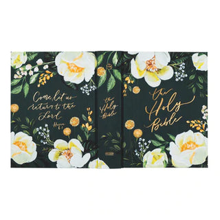 The dark, bold colors of the Augusta CSB Notetaking Bible are inspired by Maine’s capital city. The bright, white peonies contrast beautifully with the dark cover, which simply says, “The Holy Bible.” The back cover of this gorgeous Bible features Hosea 6:1, which says, “Come, let us return to the Lord.” This all-new design from Hosanna Revival features lined margins for journaling as you read, writing prayers, or jotting down sermon notes. The gorgeous interior was custom-designed by Hosanna Revival to create an immersive experience as you read and study God’s Word.