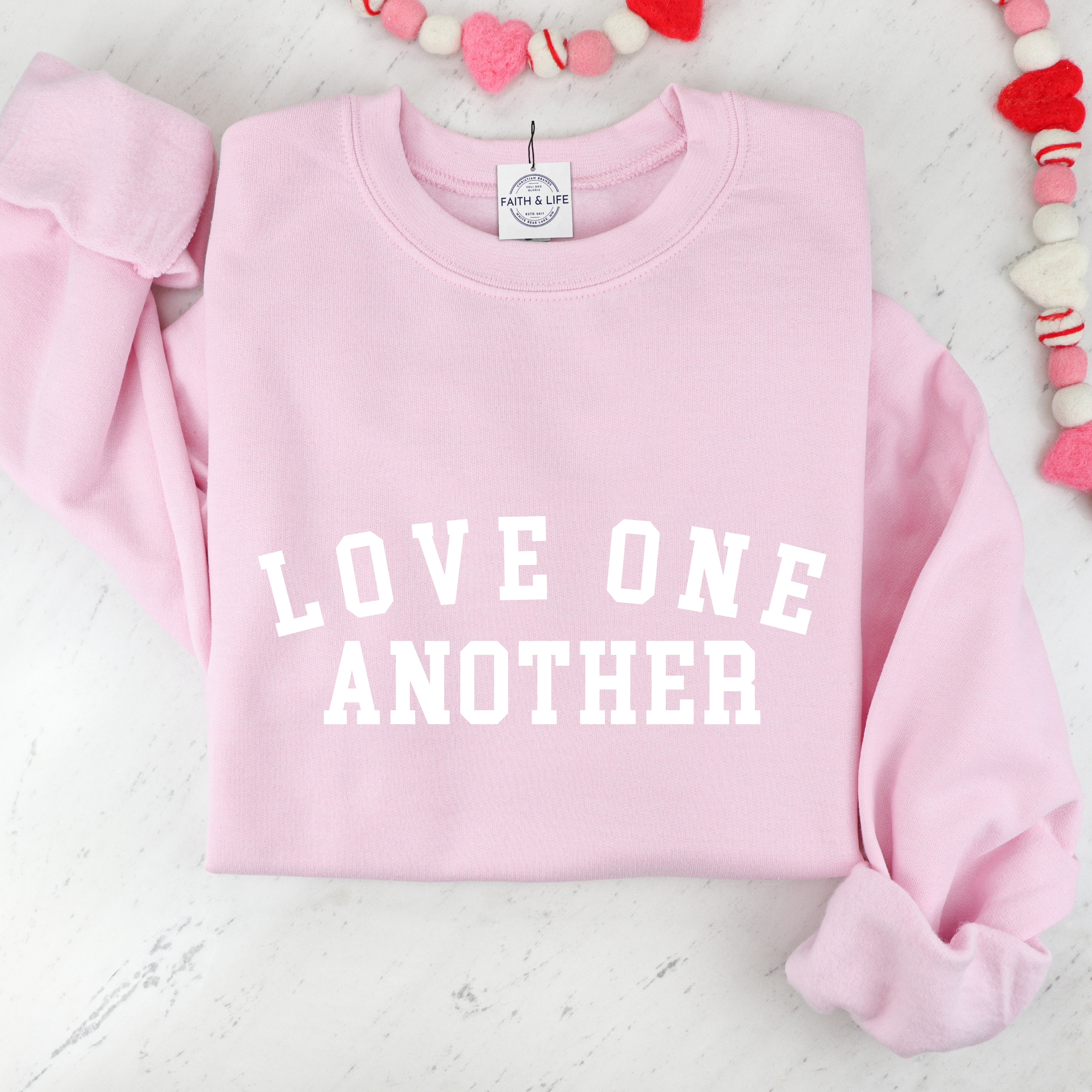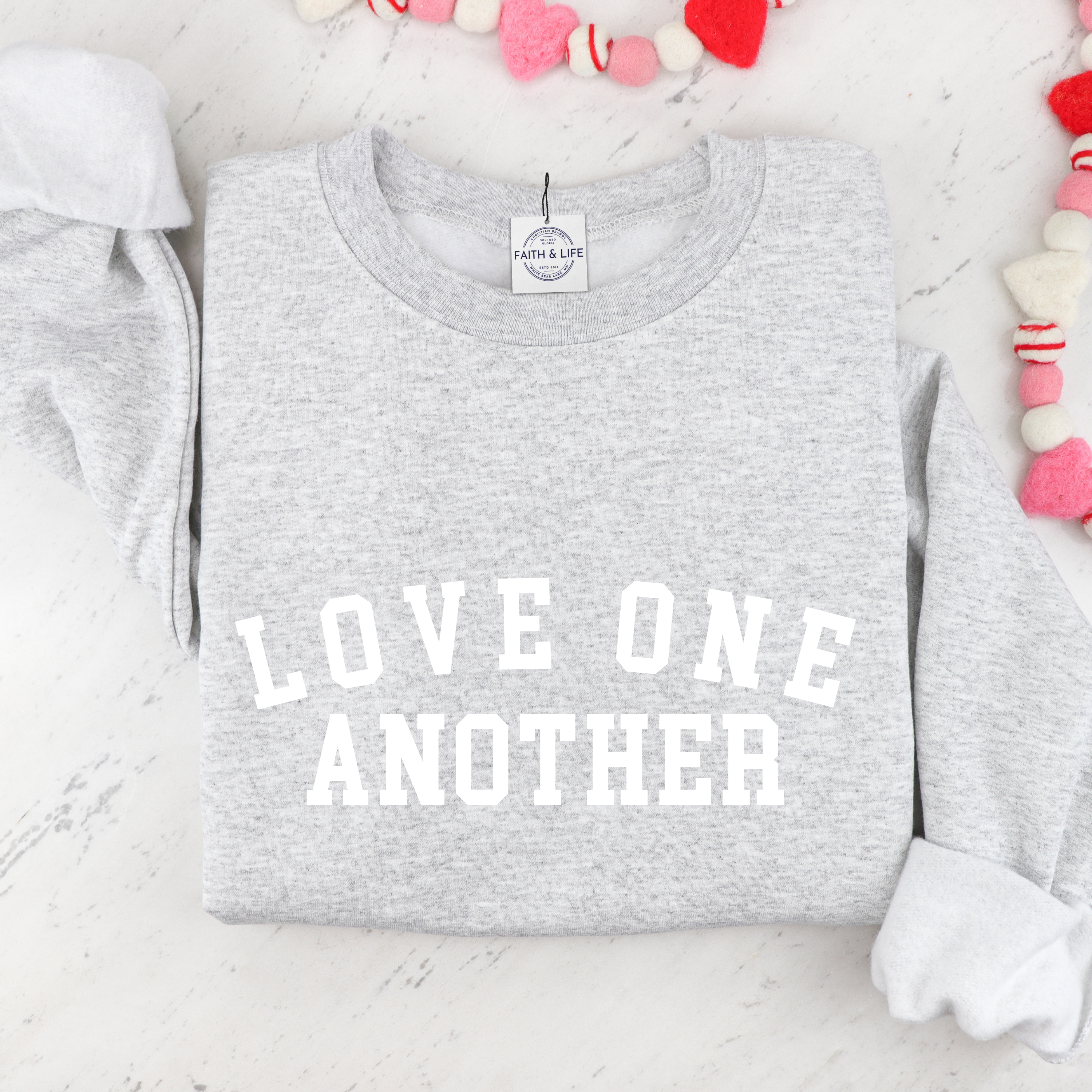 Love One Another Christian Cozy Crewneck Valentine Sweatshirt