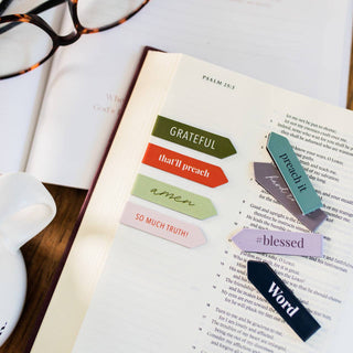 Read, study, and plan with this Preach It Mini Magnetic Bookmark Set. With these eight magnets, you are able to clip a bookmark over your page so that you never lose your place again! Made using high-quality magnetic material, they are sturdy enough to stay in place without ruining any of your pages. This set of magnetic bookmarks has eight beautiful designs with chic lettering and unique fonts, making these great tools for your quiet time or a fun, encouraging gift to give a friend! Perfect for back to school!