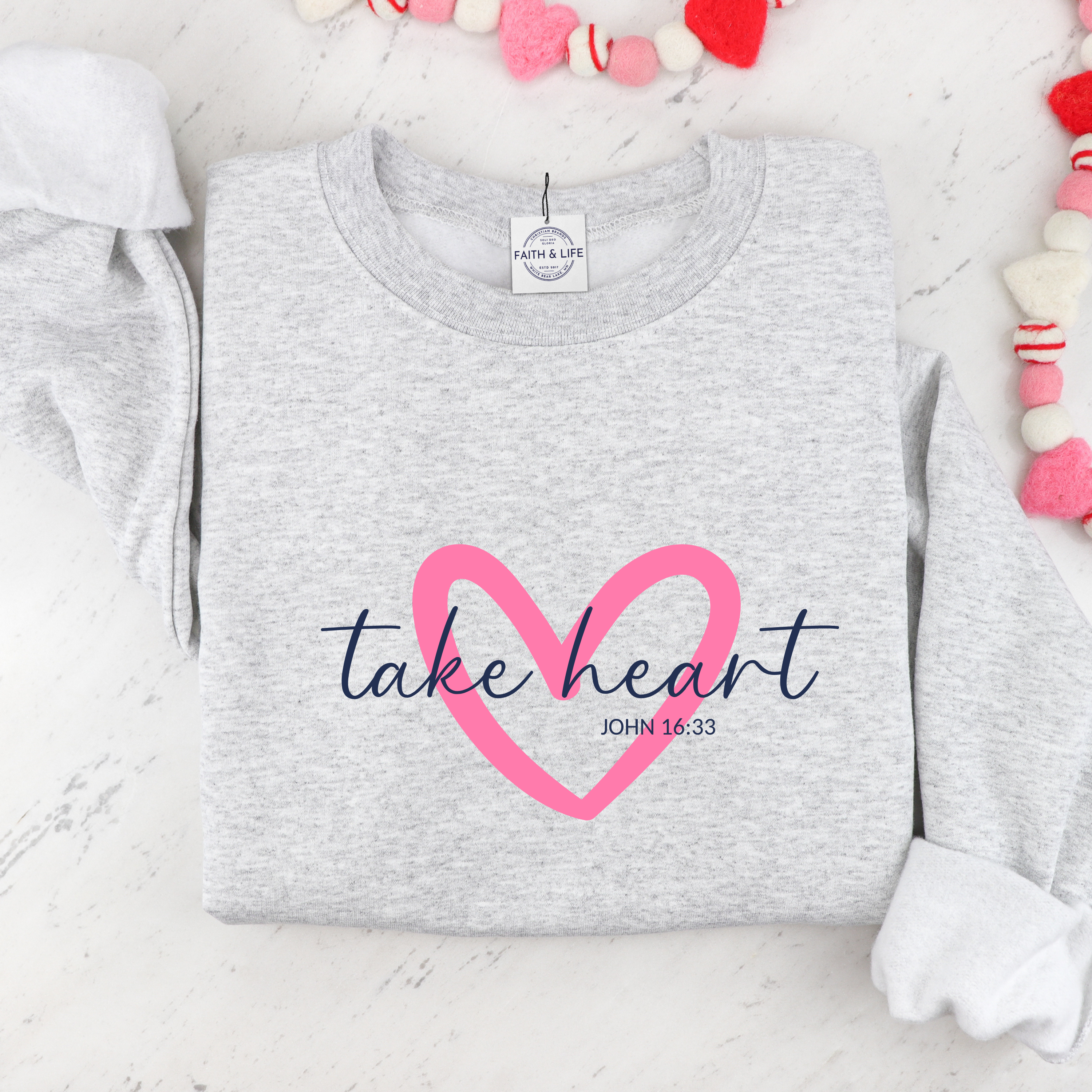 Take Heart Christian Cozy Crewneck Valentine Sweatshirt
