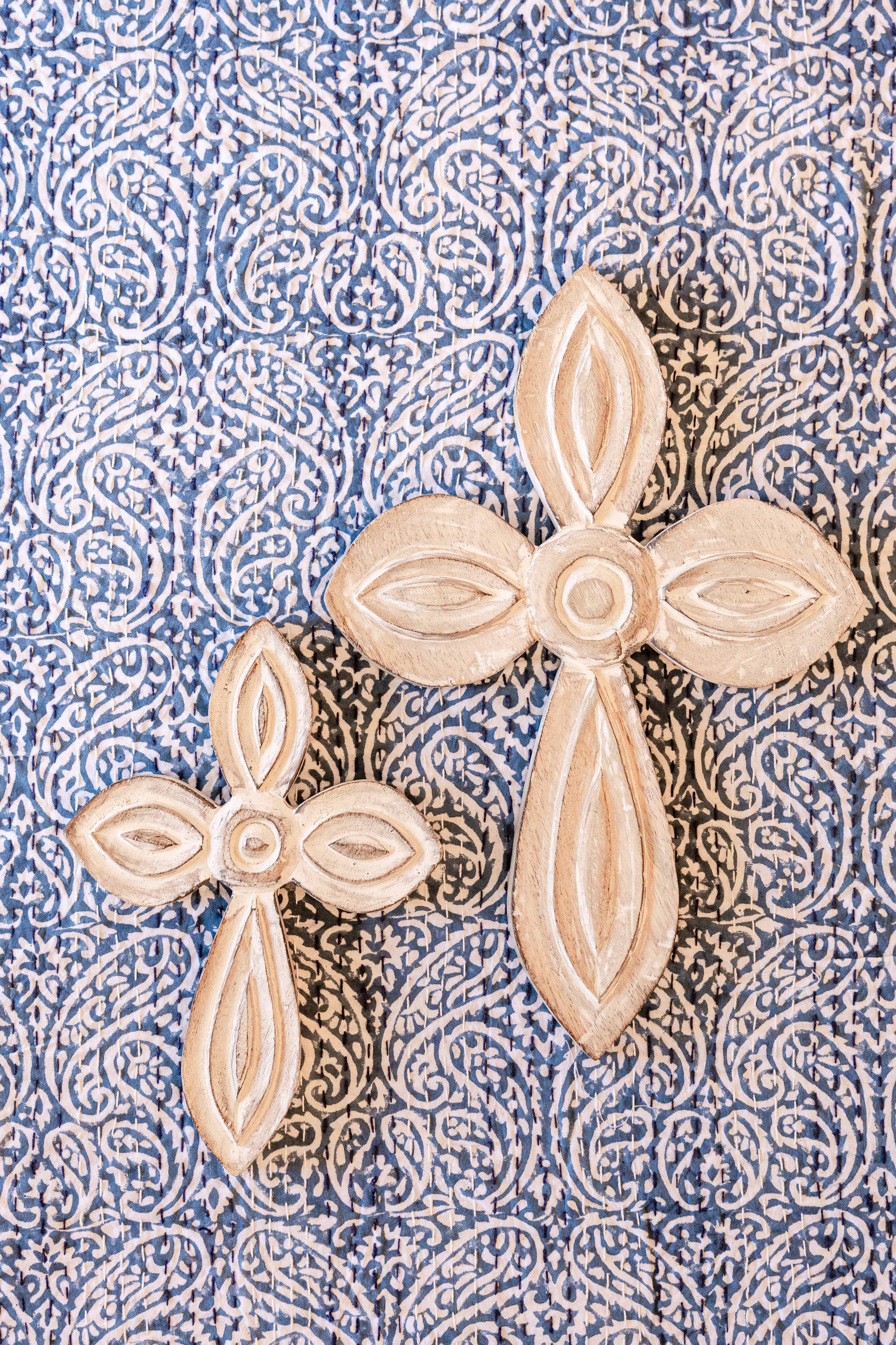 This cross, crafted from durable mango wood, features a refined whitewash finish that adds a touch of elegance to any space. Its sleek design and convenient sawtooth hanger make it easy to display, while its 10" L x 1.5" W x 14" H dimensions provide the perfect balance of style and practicality. Ideal for enhancing your decor with a timeless, rustic charm.