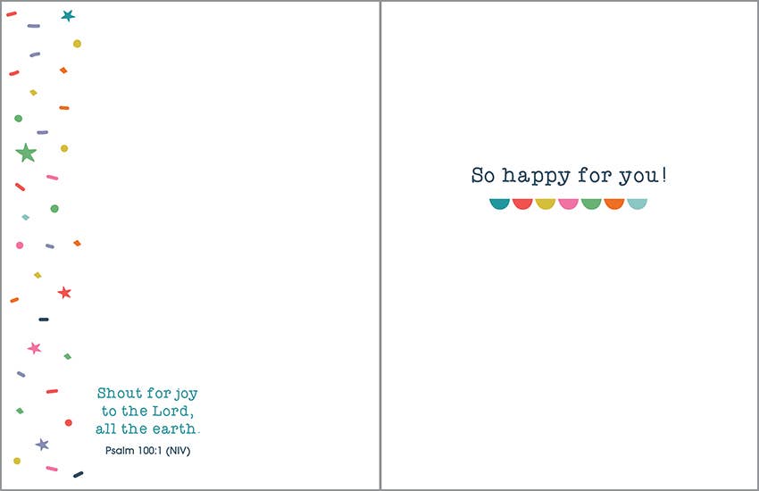 Greeting card with Envelope. Congrats to you So happy for you! (Psalm 100:1 NIV) Folded size: 4.25" x 5.5" (A2). Proudly made in the U.S.A.