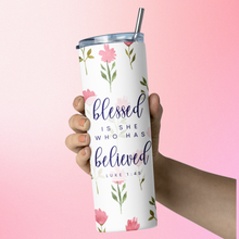 This Christian stainless steel travel drink tumbler is designed and hand pressed at Naptime Faith & Life Gift Shop in White Bear Lake. Great for hot or cold beverages and comes with a lid and stainless steel straw.