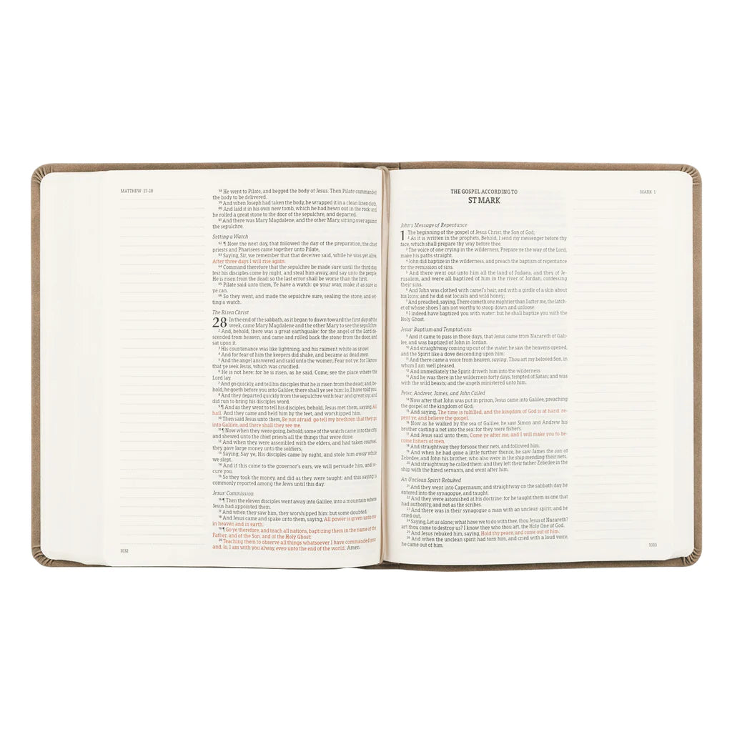 The dreamy shores of Marlo, an Australian beach town inspired the cover of this beautiful, soft leather-like Bible. The beaches of Marlo are a mix of rocky banks and sandy shores overlooking the Tasman Sea, creating a breathtaking view—a perfect place to quiet your soul and meditate on the goodness of God. This all-new design from Hosanna Revival features lined margins for journaling as you read, writing prayers, or jotting down sermon notes. The gorgeous interior was custom-designed by Hosanna Revival to create an immersive experience as you read and study God’s Word.