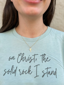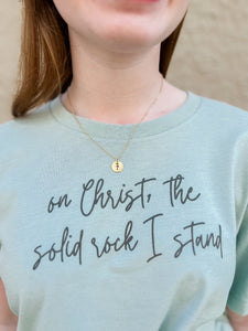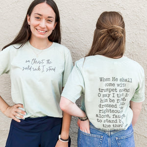 On Christ The Solid Rock I Stand Hymn Vintage Wash Tee Shirt Front and Back Design
