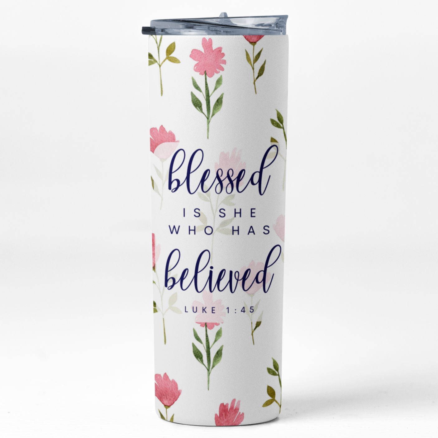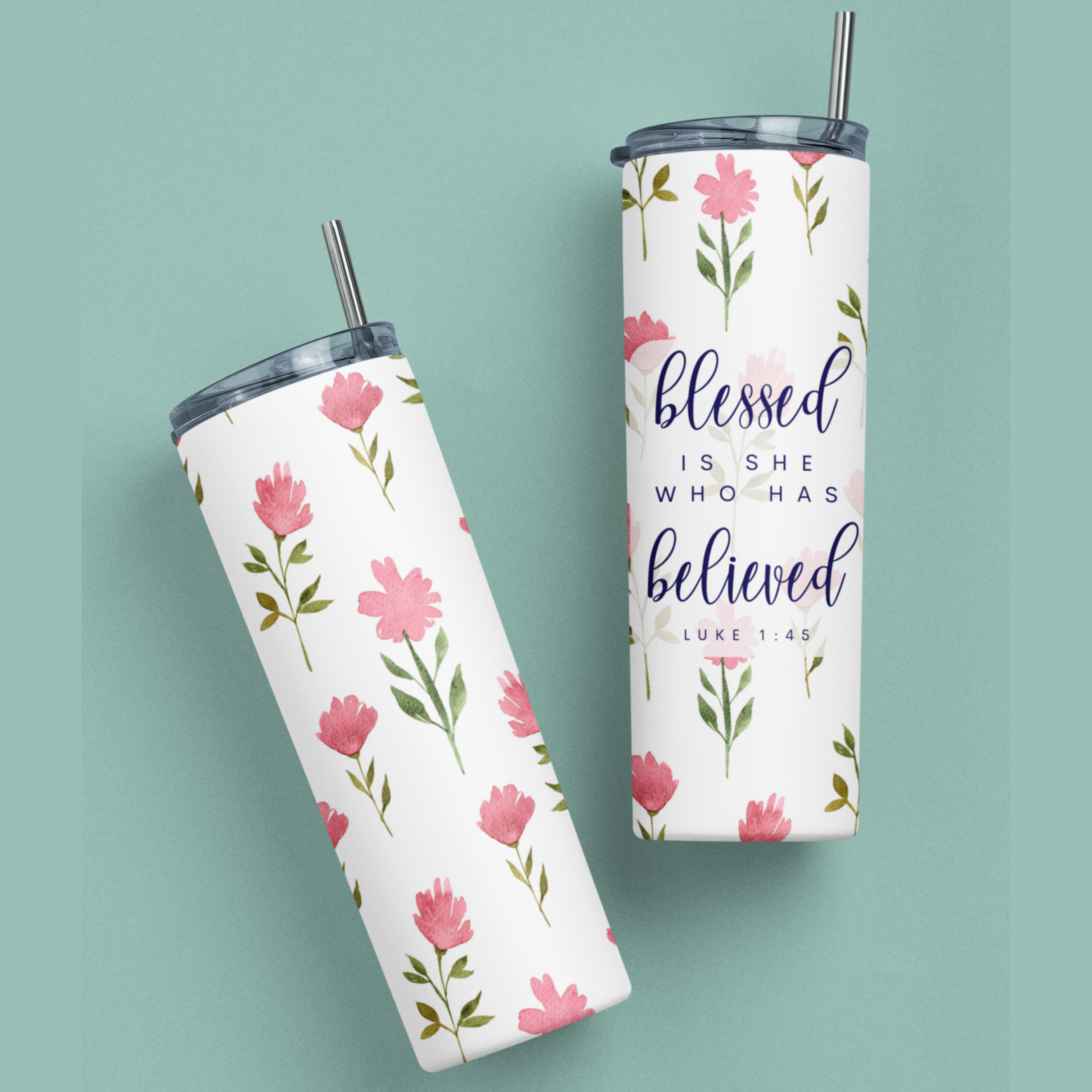 This Christian stainless steel travel drink tumbler is designed and hand pressed at Naptime Faith & Life Gift Shop in White Bear Lake. Great for hot or cold beverages and comes with a lid and stainless steel straw.