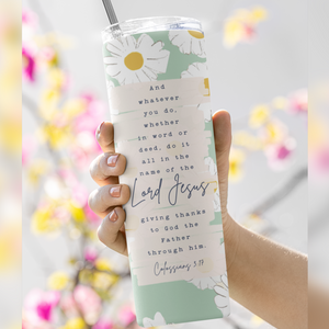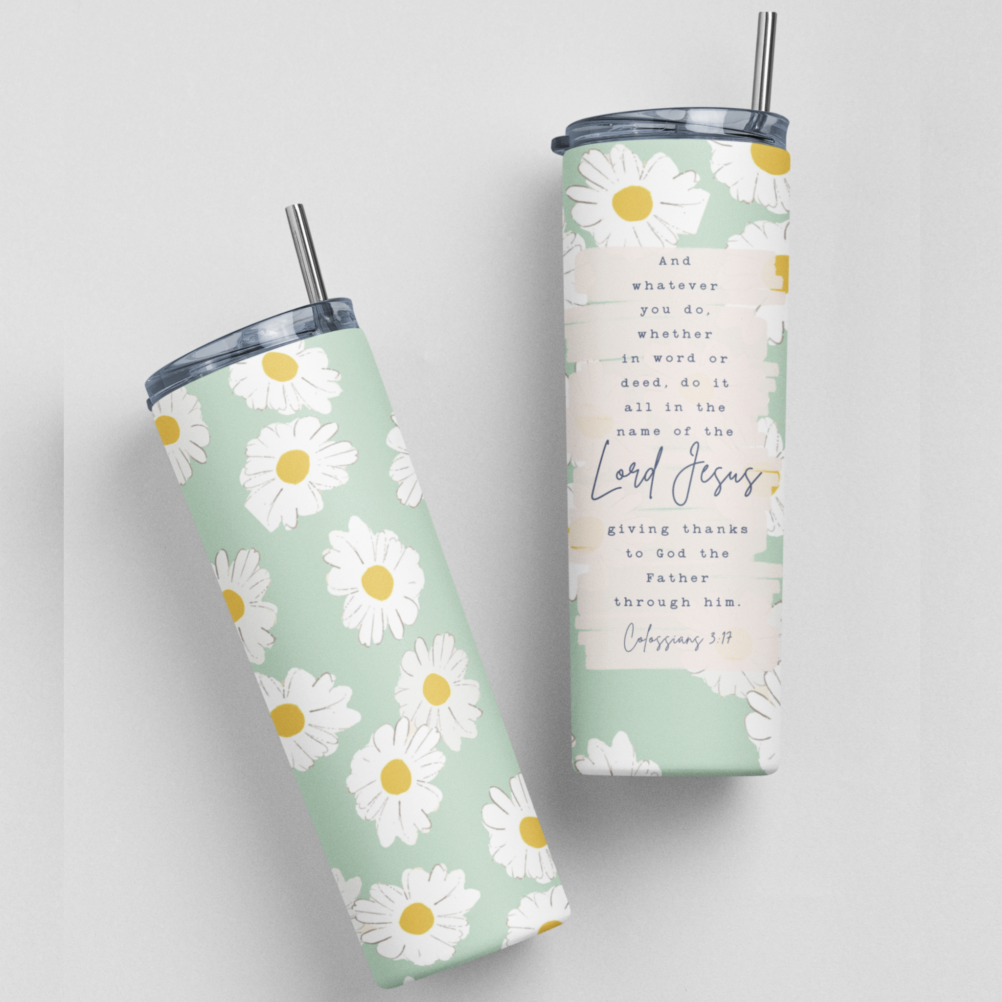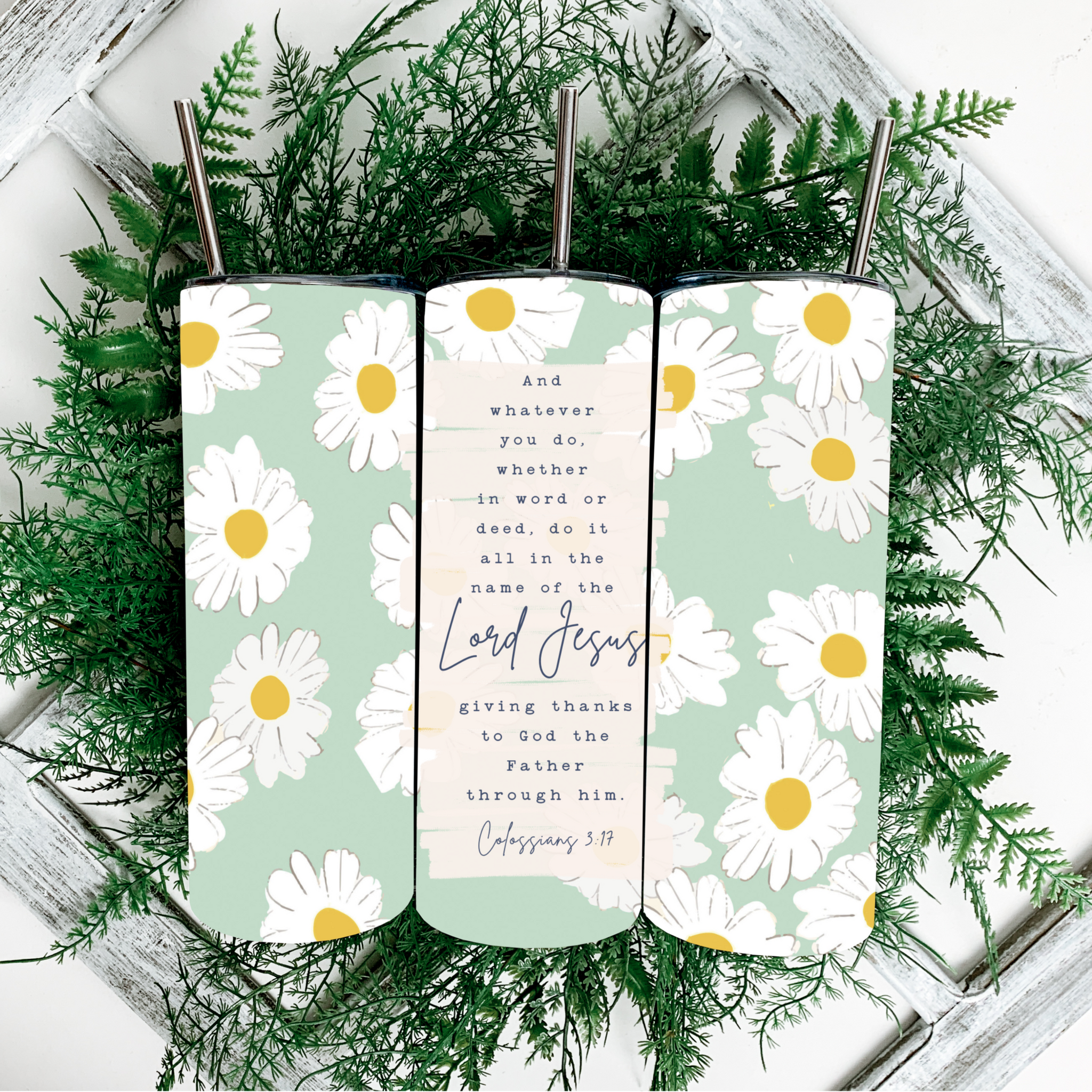 Pastel Daisy Colossians 3:17 Stainless Steel 20oz. Skinny Tumbler