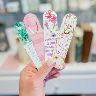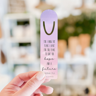 This beautiful Jeremiah 29:11 Scripture bookmark is made of robust aluminum construction and 0.03" thickness provide durability and longevity. It also features a top slot that holds single pages firmly in place. The bookmark measures 1.25" x 5" and is handmade in the USA using parts sourced from around the world. With a glossy finish and white coating, it's an aesthetically pleasing addition to any book collection.1.25" x 5"
