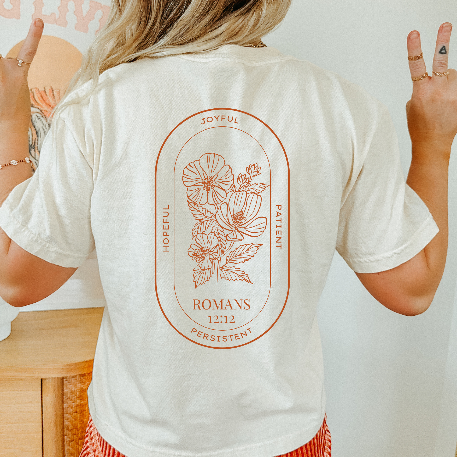 Joyful, Patient, Persistent, Hopeful Romans 12:12 Garment Dyed Tee Shirt
