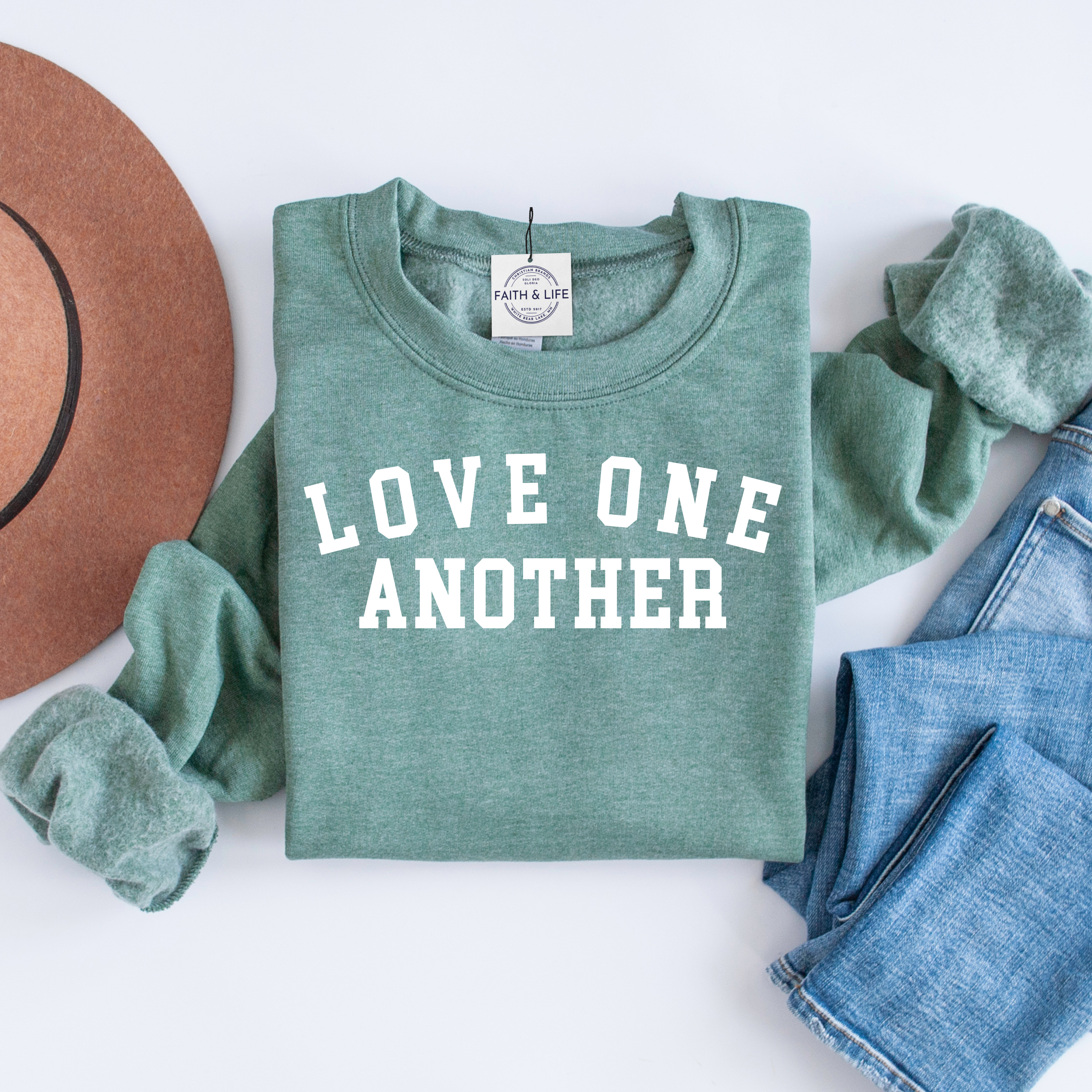 Love One Another Christian Crewneck Valentines Sweatshirt