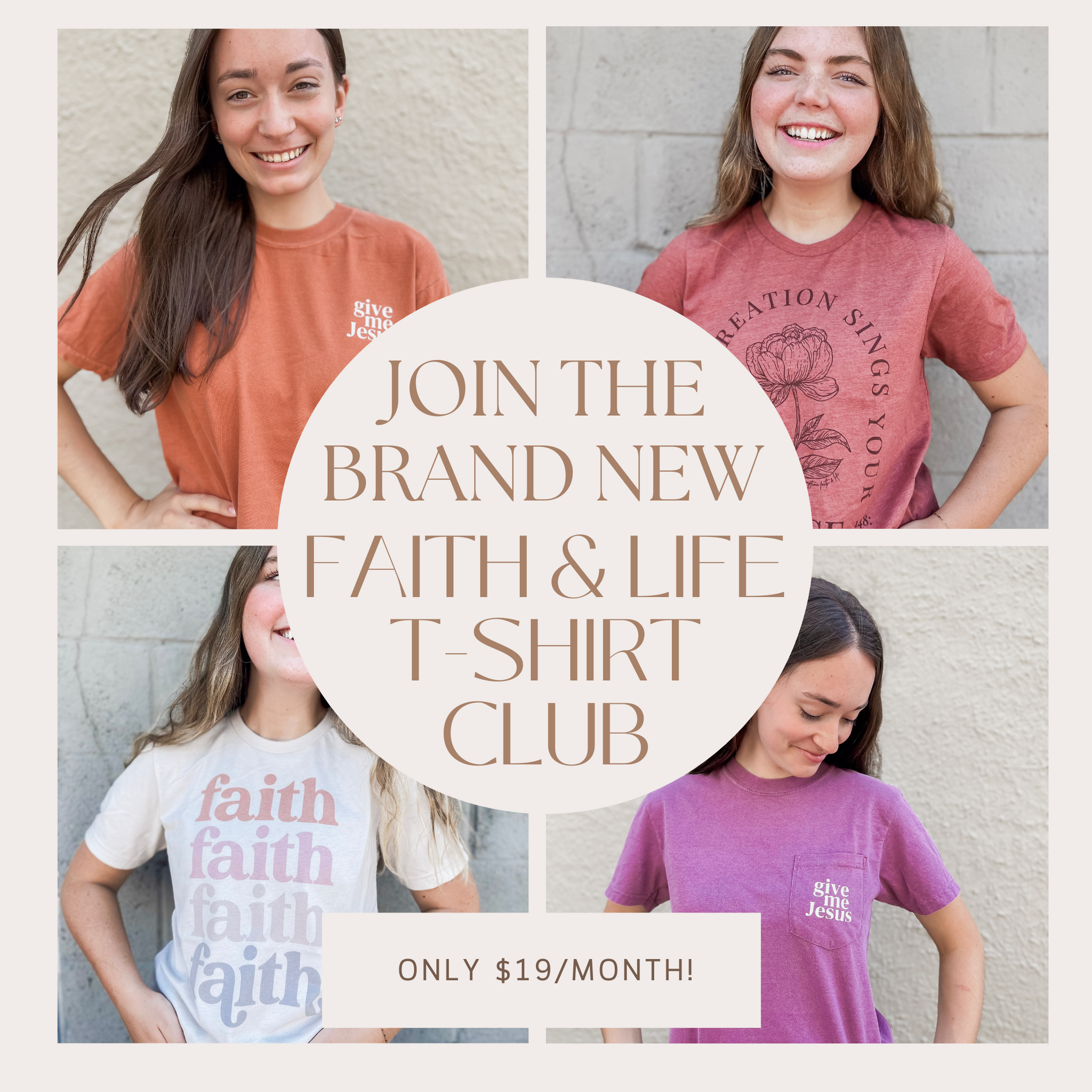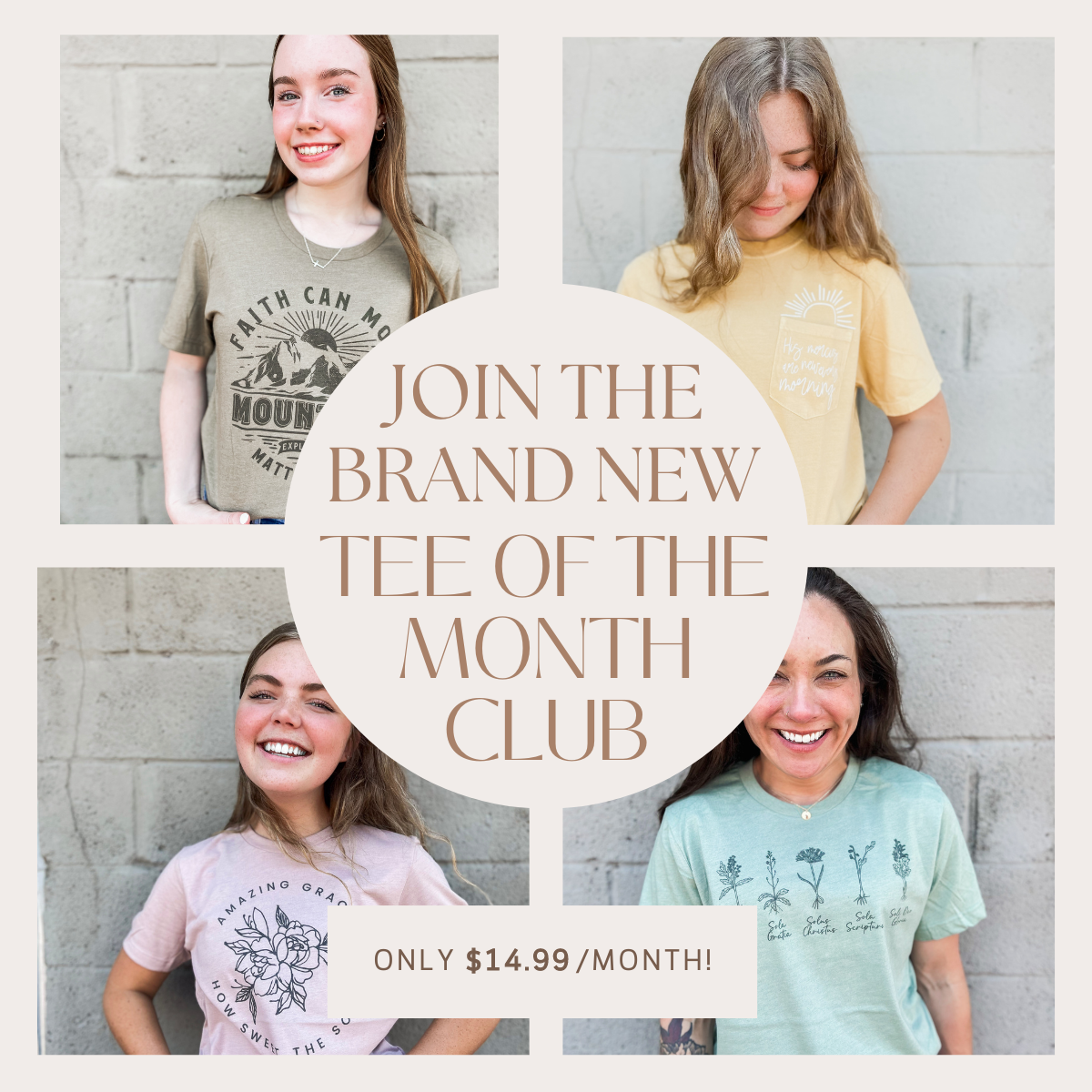 Join the club and every month you will receive an authentic T-shirt to show your love for the Lord! We feature one shirt per month and once that month is over, that T-shirt will not be featured as the Tee of the Month ever again. That makes each tee that you receive, a true limited edition.