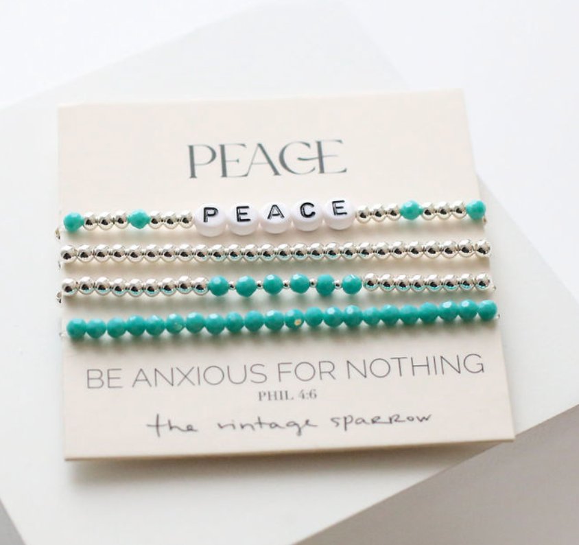 Peace Silver Stack Bracelet Set